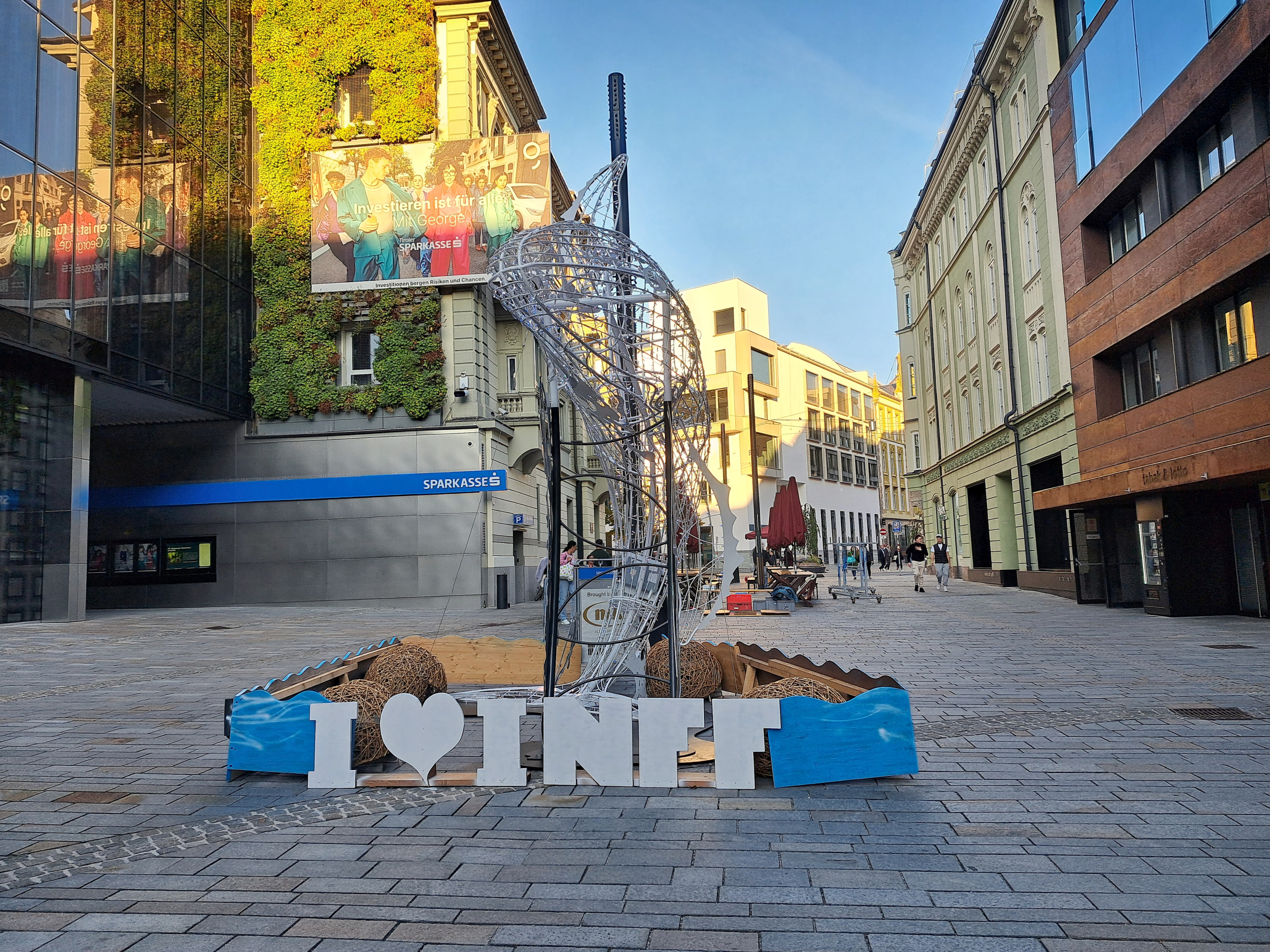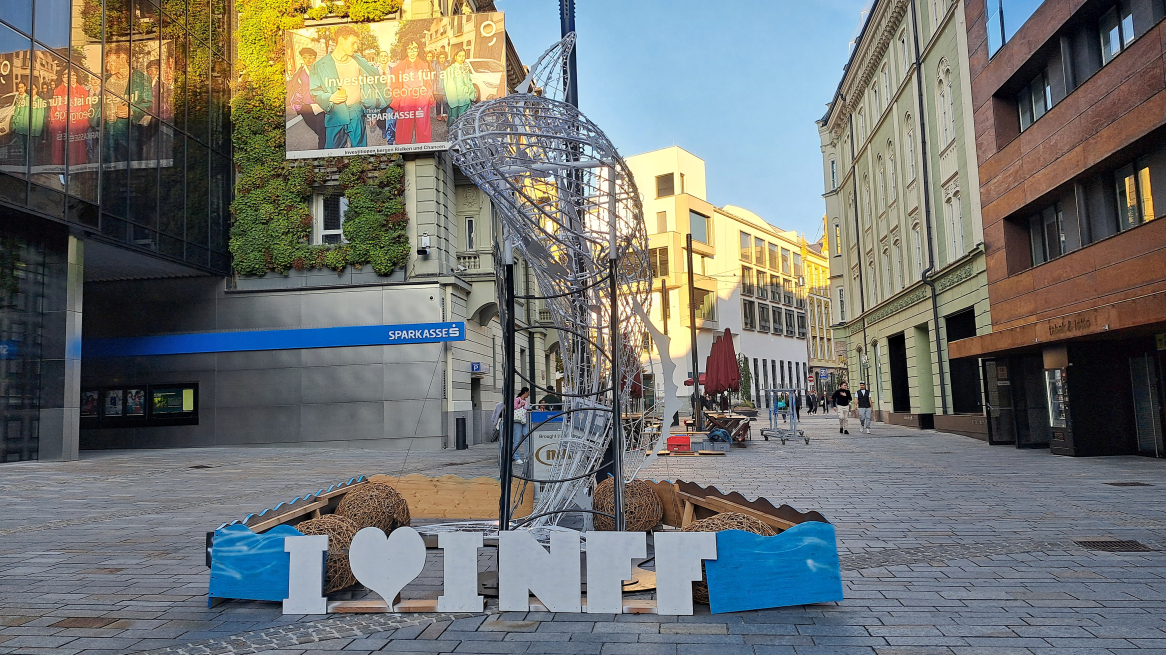 ¡INFF por toda la ciudad! En el pasaje Sparkasse, entre Sparkassenplatz y Maria-Theresien-Straße, los peatones pudieron escuchar el canto de la alondra. elisabeth de Koekkoek