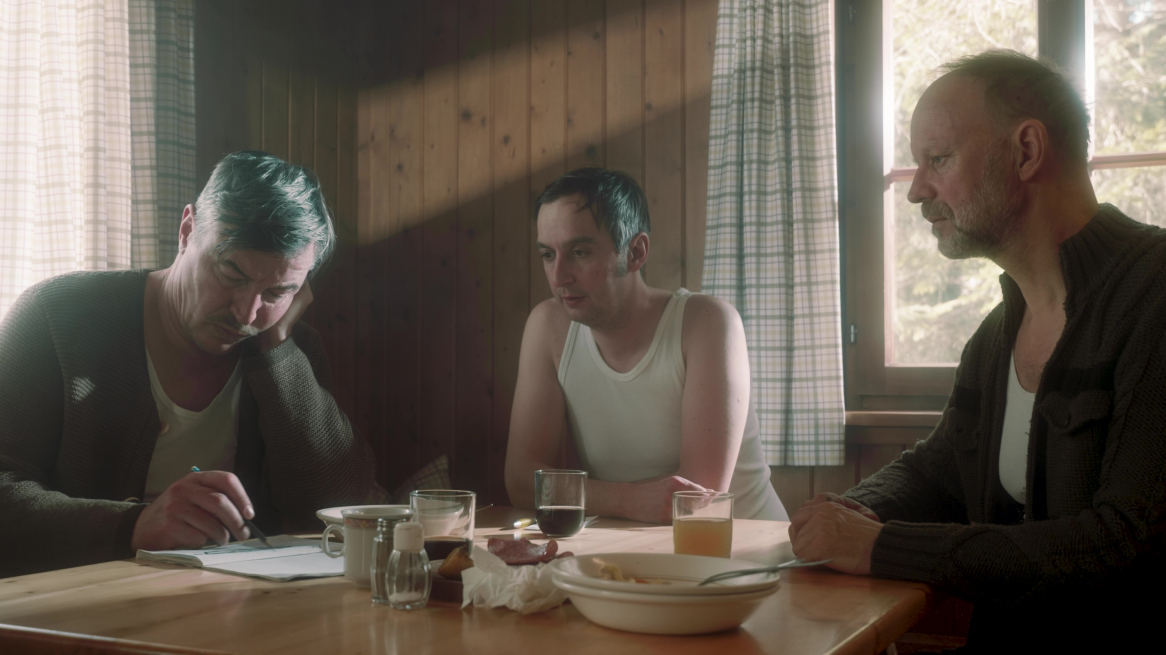 Image du film : "Le marteau qui tombe" avec les acteurs Markus Oberrauch, Bernhard Wolf et Thomas Gassner (de gauche à droite) ; © Bunny Beach Film