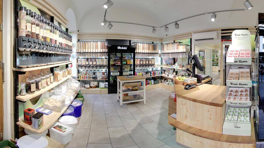 Un très bon magasin bio sans emballage est par exemple le Greenroot am Marktgraben à Innsbruck, qui se trouve à quelques mètres seulement de la vieille ville. L'offre y est très variée et provient en grande partie de producteurs régionaux. Ce qui est bien avec les magasins sans emballage, c'est que l'on peut déterminer soi-même la quantité de nourriture que l'on veut acheter, que l'on n'achète que ce dont on a vraiment besoin et que l'on ne paie que le poids réel du contenu et non l'emballage. Pour cela, il suffit d'apporter ses propres récipients ou sacs en papier au magasin et de les remplir avec la quantité nécessaire. Dans mon cas, il s'agissait pour le pain d'épices fourré : d'abricots secs, de dattes, de raisins secs, de pruneaux et de farine, le tout de qualité bio. D'ailleurs, ceux qui n'en ont pas sur eux peuvent se procurer un sac sur place.
