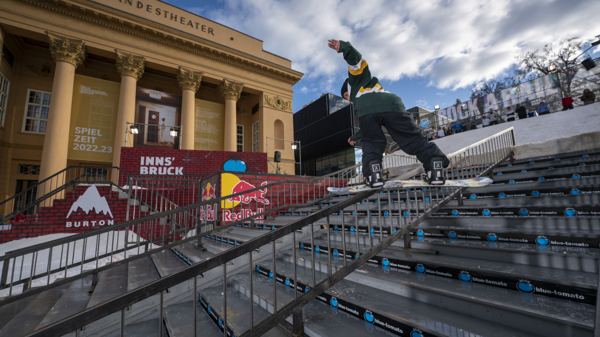 "Je trouve ça vraiment cool d'être en plein centre-ville. Il y a une ambiance très particulière entre la Hofburg et le Landestheater. Et en soi, Innsbruck reste quand même le haut lieu du snowboard"