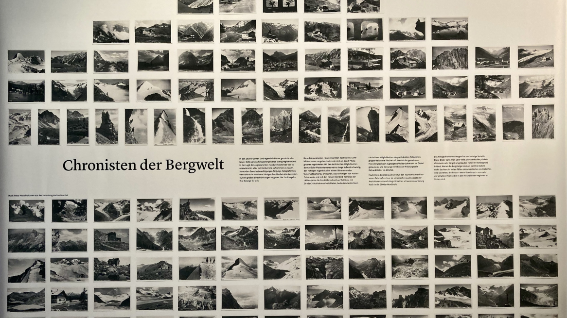 Proprio all'inizio della mostra c'è un piccolo spaccato dell'archiviazione dei documenti, sulla parete a sinistra dell'ingresso una serie di cartoline di paesaggi diversi. „Gämseneier“ Curiosa dal punto di vista odierno, ma di grande successo all'epoca: la serie in cui i camosci si schiudono dalle uova.