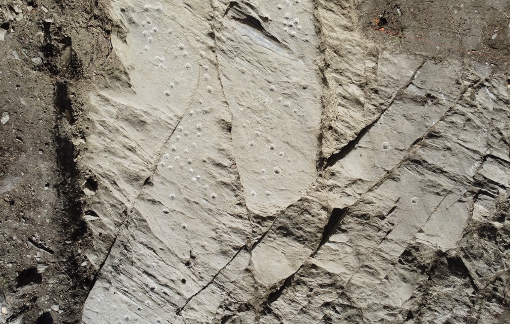 La "pietra dell'angelo" di Ellbögen. Le tracce delle suole dei bambini sono ben visibili. Anche alcune conchiglie. Immagine: Thomas Walli-Knofler