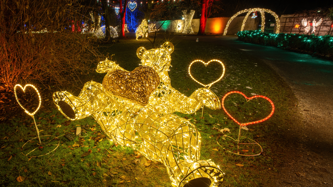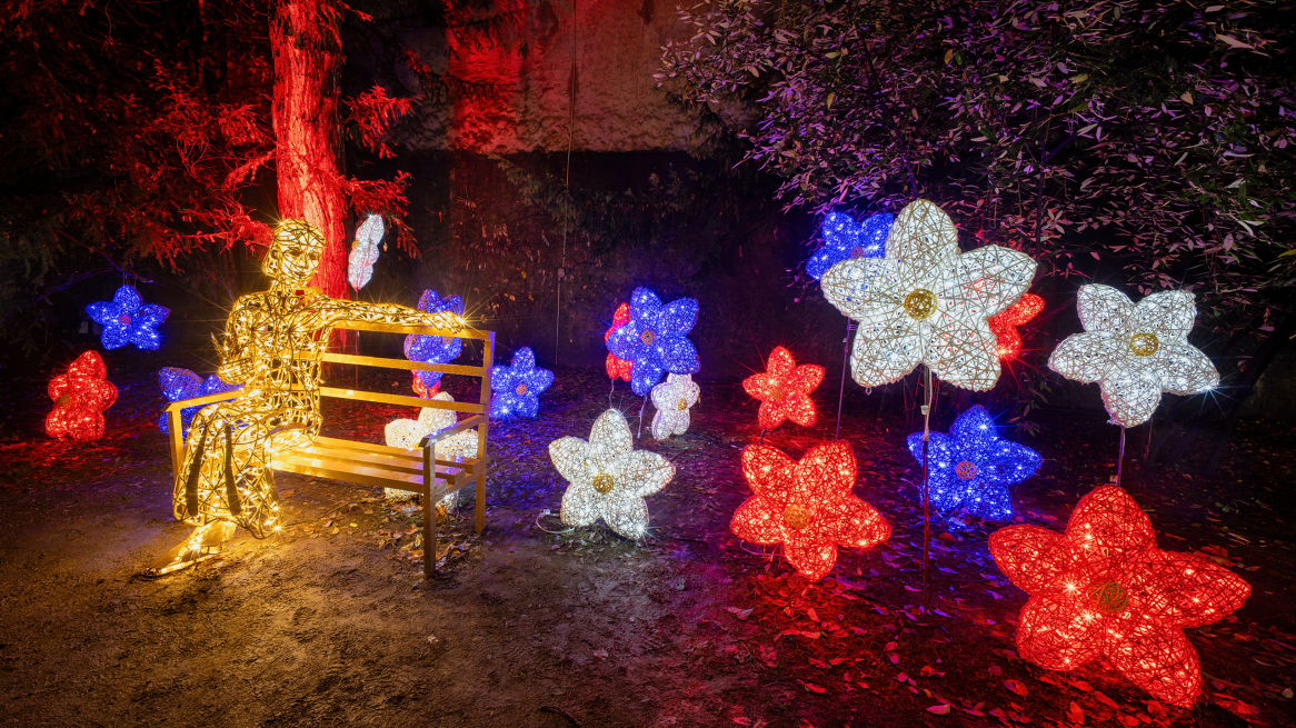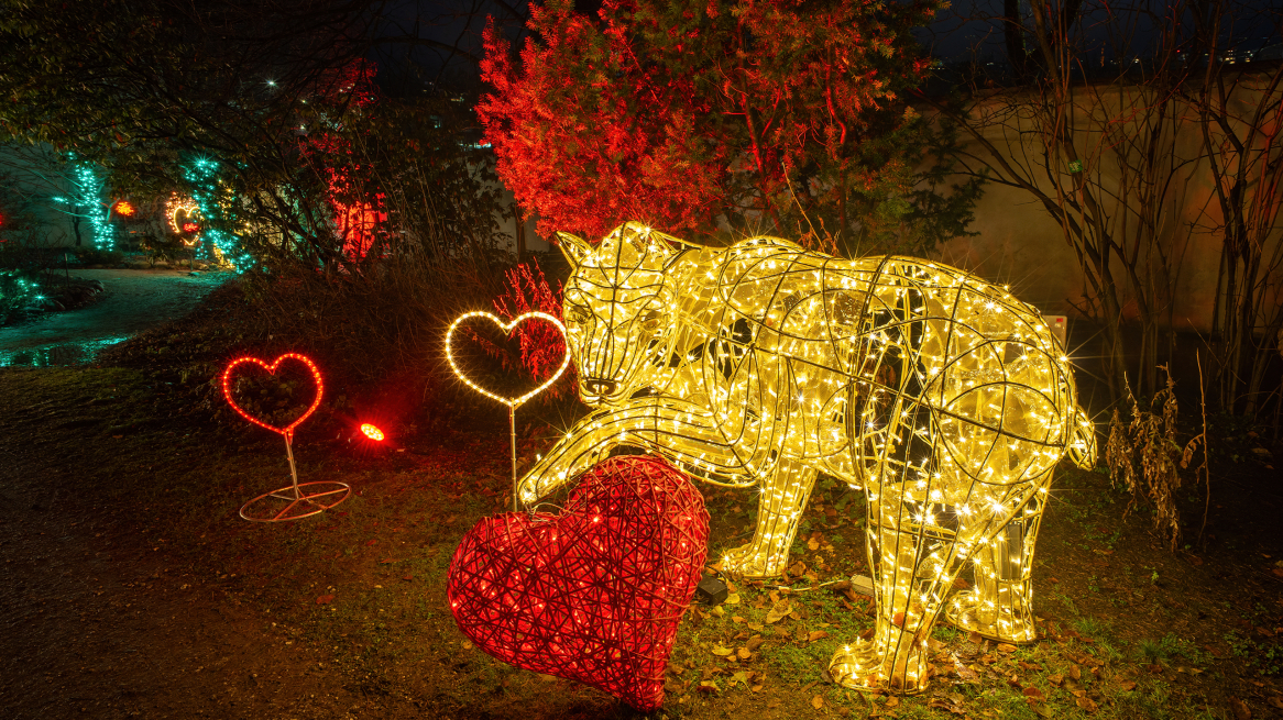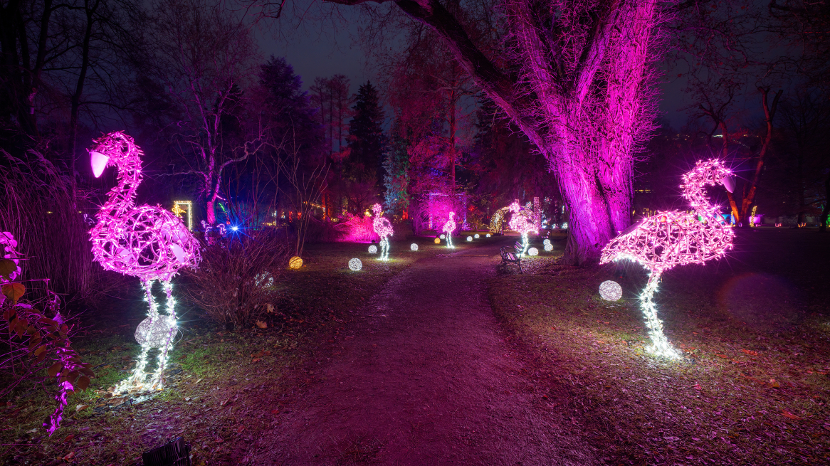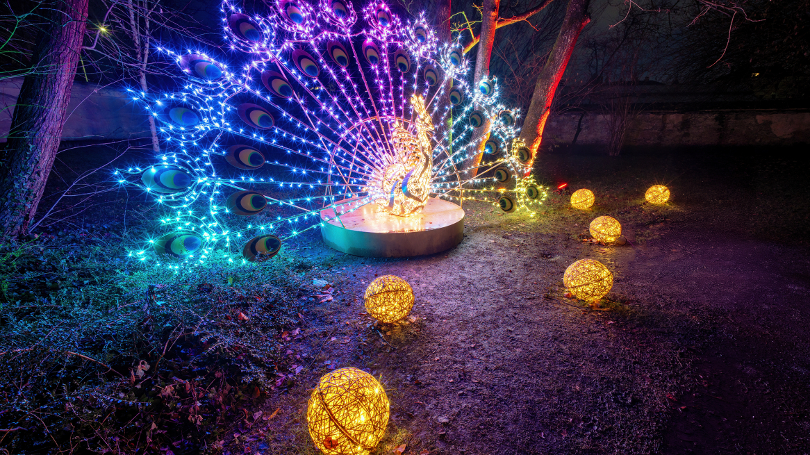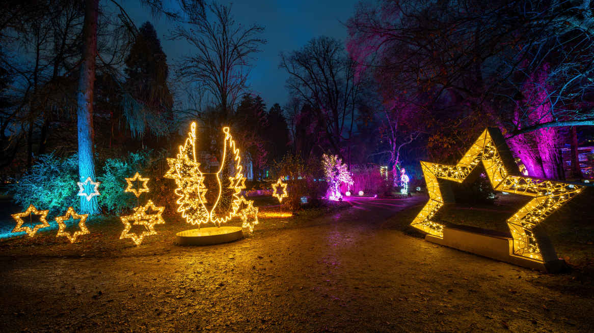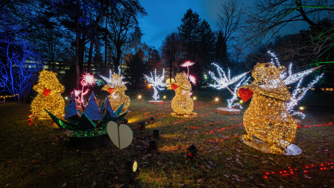 Particolarmente suggestive sono le installazioni progettate con amore. Le figure luminose artistiche sono state progettate appositamente per il giardino del cortile e si integrano perfettamente con la natura circostante. Che si cammini in un tunnel di stelle scintillanti o che si rimanga ipnotizzati da una lontra luminosa, la serata qui sarà un'esperienza indimenticabile.