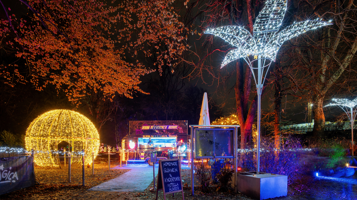 Lumagica è molto più di una semplice attrazione visiva. Una musica d'atmosfera accompagna il percorso nel parco e crea un'atmosfera armoniosa. Si possono gustare bevande calde come il vin brulé presso uno stand decorato con cura. In questo modo la passeggiata attraverso l'Hofgarten diventa un'esperienza natalizia.