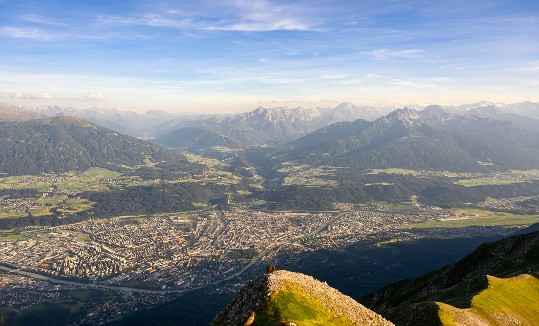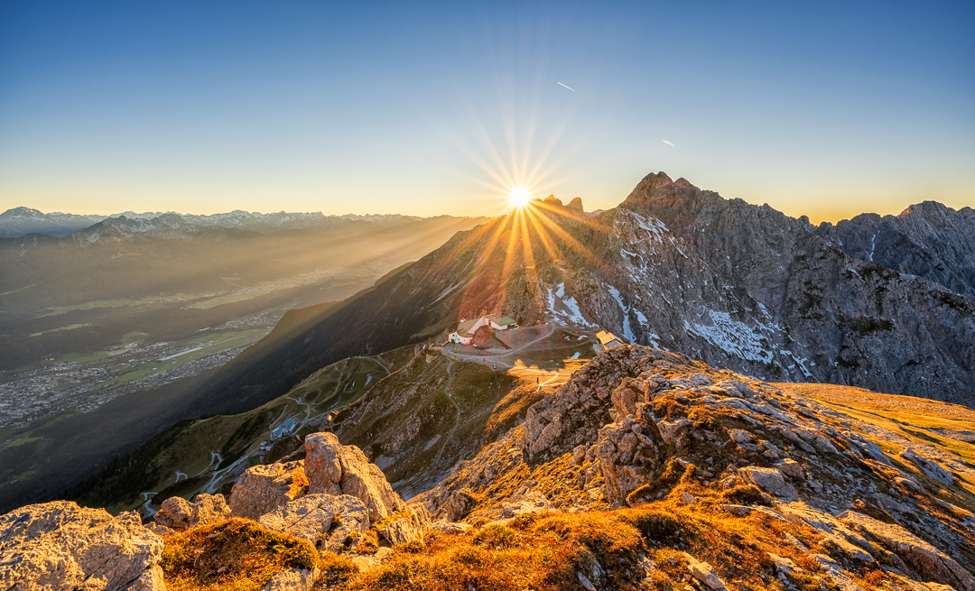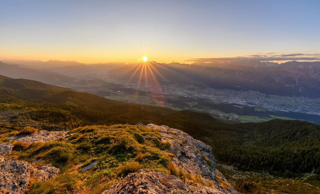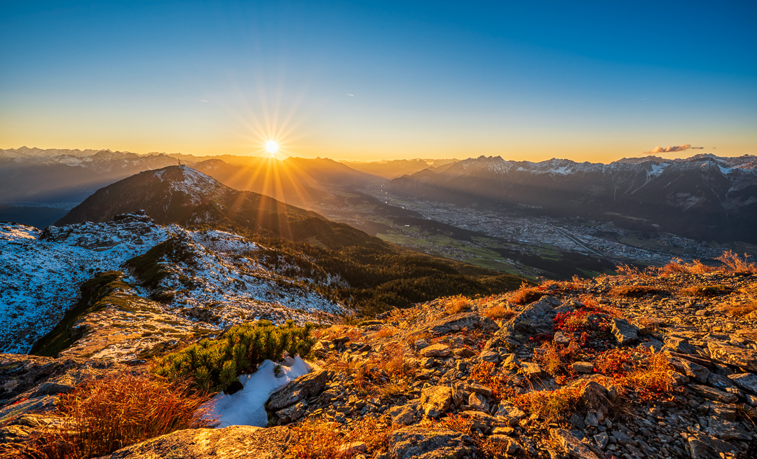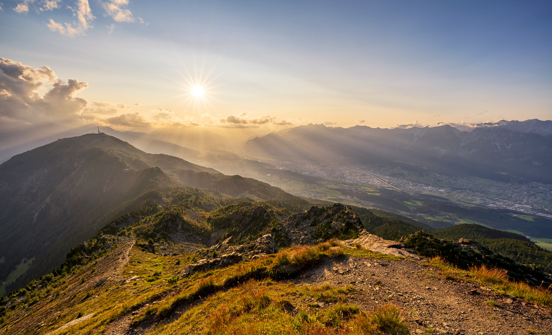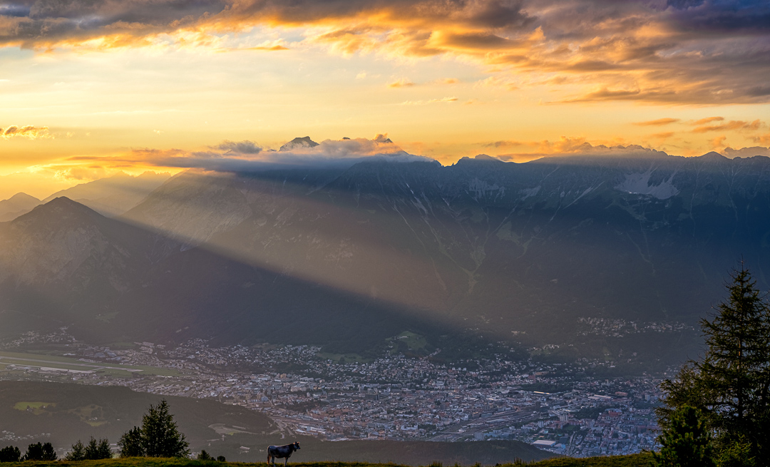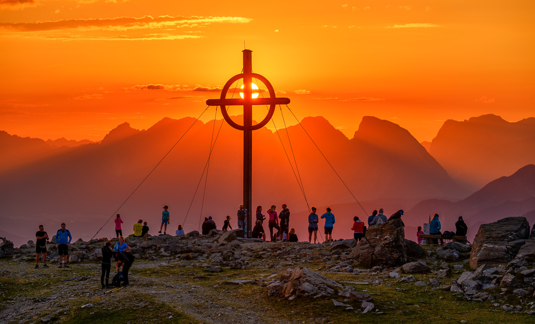 Ogni giovedì, la Patscherkofelbahn di Innsbruck offre corse serali dalle 18.00 alle 23.00. Questo permette anche ai principianti o alle famiglie con bambini di vivere un tramonto da sogno senza che si faccia troppo tardi. Il tour parte dalla stazione a monte della funivia Patscherkofel in direzione della montagna locale di Innsbruck. Qui si può camminare lungo una comoda strada forestale verso la vetta, ma c'è anche la possibilità di raggiungere la vetta un po' fuori dai sentieri battuti attraverso un sentiero escursionistico. Il tempo di percorrenza totale è di mezz'ora. Una volta raggiunto il Kofel, sarete ricompensati da un indimenticabile tramonto su Innsbruck. In seguito, l'accogliente rifugio e il ristorante del Kofel vi invitano a gustare una tazza di tè caldo o un banchetto culinario.