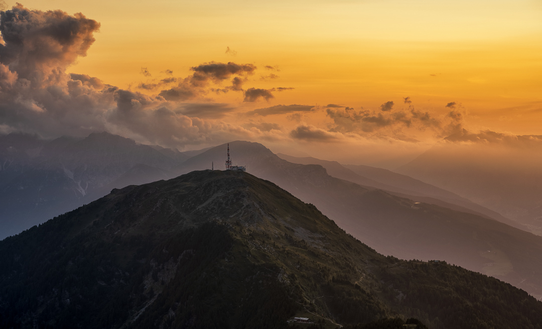 Diverse ferrovie di montagna nella zona di Innsbruck offrono la possibilità di utilizzarle fino a tarda sera. In questo modo si ha l'opportunità di ammirare il tramonto e poi tornare comodamente a valle con la gondola. Le corse serali sono offerte dalla Glungezerbahn, dalla Nordkettenbahn, dall'Axamer Lizum e dalla Patscherkofelbahn con frequenza variabile; potete trovare le date esatte sulla homepage delle rispettive ferrovie di montagna.