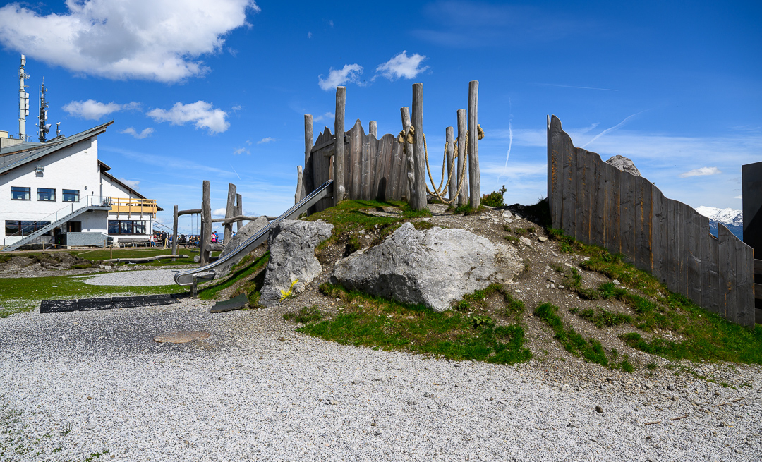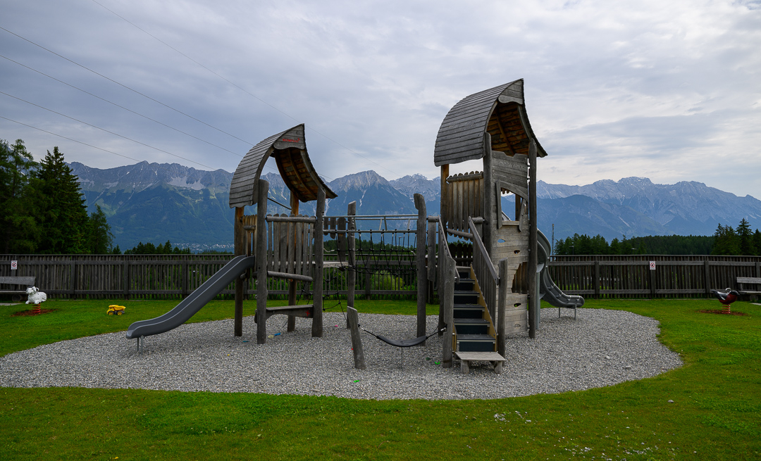 Het eerste kinderparadijs ligt direct bij het dalstation van de Patscherkofelbahn. Een groot speelhuis omringd door kleine kiezelstenen nodigt kinderen uit om te spelen. Er is ook een zandbak, wipdieren en groene zones. Het terras van het restaurant"Das Hausberg" biedt een goed uitzicht op de speeltuin, zodat je kunt ontspannen en van je koffie kunt genieten. Neem daarna de Patscherkofel kabelbaan naar het bergstation. De tweede speeltuin ligt al te wachten naast restaurant "Das Kofel". Het is vrij klein, maar goed geplaatst zodat mama en papa ook kunnen genieten van het prachtige panorama vanaf de Patscherkofel.