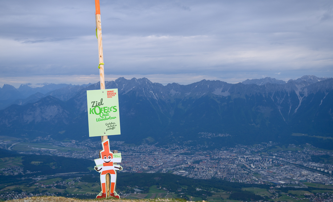 De "Kofele's Quiz Wandeltocht" start vanaf het bergstation en biedt extra wandelplezier. De tien puzzels tot aan de top zorgen voor spanning en aan het einde geven de juiste antwoorden het oplossingswoord. In het restaurant"Die Gipfelstube" direct op de top of in"Das Kofel" bij het bergstation krijgt elk kind met het juiste antwoord een verrassing. Overigens is de hele route naar de top van de Patscherkofel geschikt voor kinderschalen.