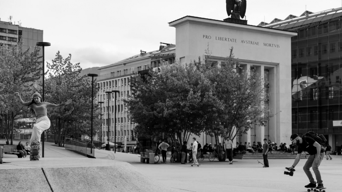 Waar ter wereld kun je skaten en rondhangen voor het parlementsgebouw van de stad? Het legendarische Landhaus Plaza is een van de favoriete skatespots in Innsbruck en staat ook bekend als Landhausplatz of Landi.