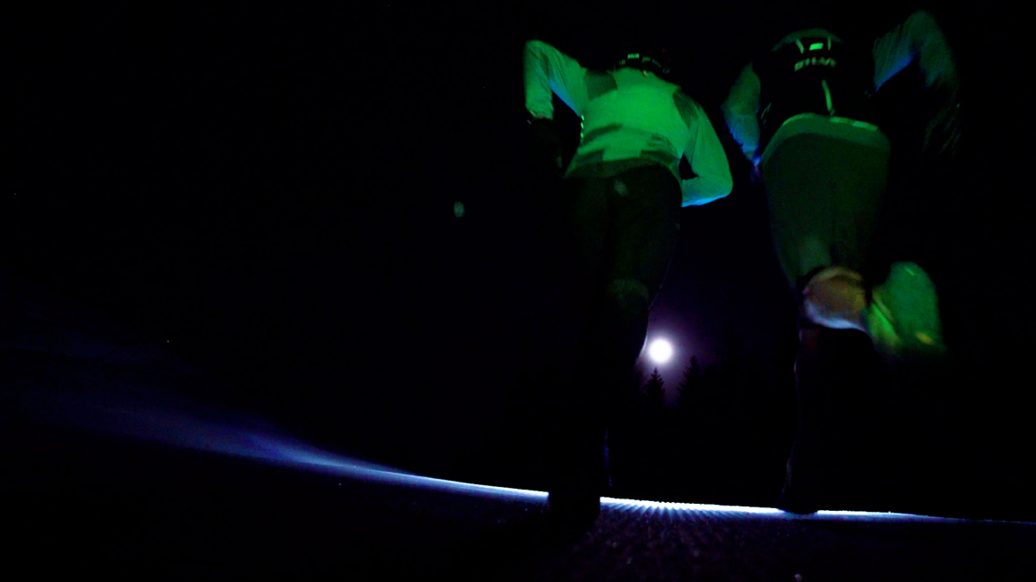 Patscherkofel stemde toe om ons vervoer te verschaffen. Normaal gesproken rennen de atleten in één ruk van de stad naar de top, zonder gebruik te maken van liften of een sneeuwscooter. Het filmen vertraagt alles (en ik ben lang niet zo snel of fit als deze atleten), dus hebben we de belangrijkste opnames in tweeën gesplitst - de 1e sessie was de vroege ochtendopname op de berg en daarna de stad en de verbinding tussen stad en berg was de 2e sessie.