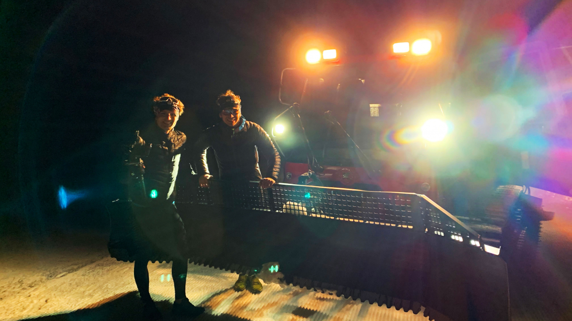 We ontmoetten Christian Norer mooi op tijd, de man die verantwoordelijk is voor de liften in Patscherkofel. We filmden de eerste paar bergscènes, pakten toen de PistenBully in en gingen op weg naar enkele opvallende delen van de pistes.